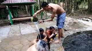 Beberapa orang pemuda terlihat sedang dimandikan untuk ritual pesugihan.